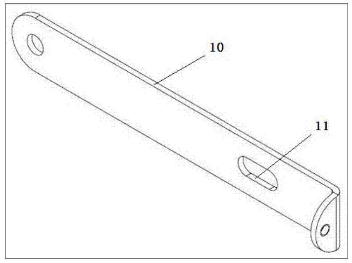 固定板7上设置用于固定涨紧调节板10的涨紧固定孔14、用于固定不带有涨紧机构的惰轮2的惰轮固定孔15、用于调节固定板7高度使得同步带3与齿条4相啮合的调节啮合槽16。