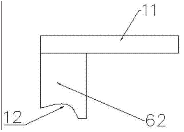 本发明再一实施例中,如图3所示,推送头包括连接于气缸活塞杆的、位于暂存托料板上的物料的上部及相应一侧的弧形限位体62,弧形限位体的下端面靠同步带输送方向的前方一侧设置呈弧形,在起到前后推送物料的同时,其可通过弧形部与暂存托料板上的相应的物料的上部弧形壁面对应进行限位,防止需要向前推送的物料自同步带的输入端一侧滑落。本例其余结构和相应的装入方式等与上述任一实施例类同。